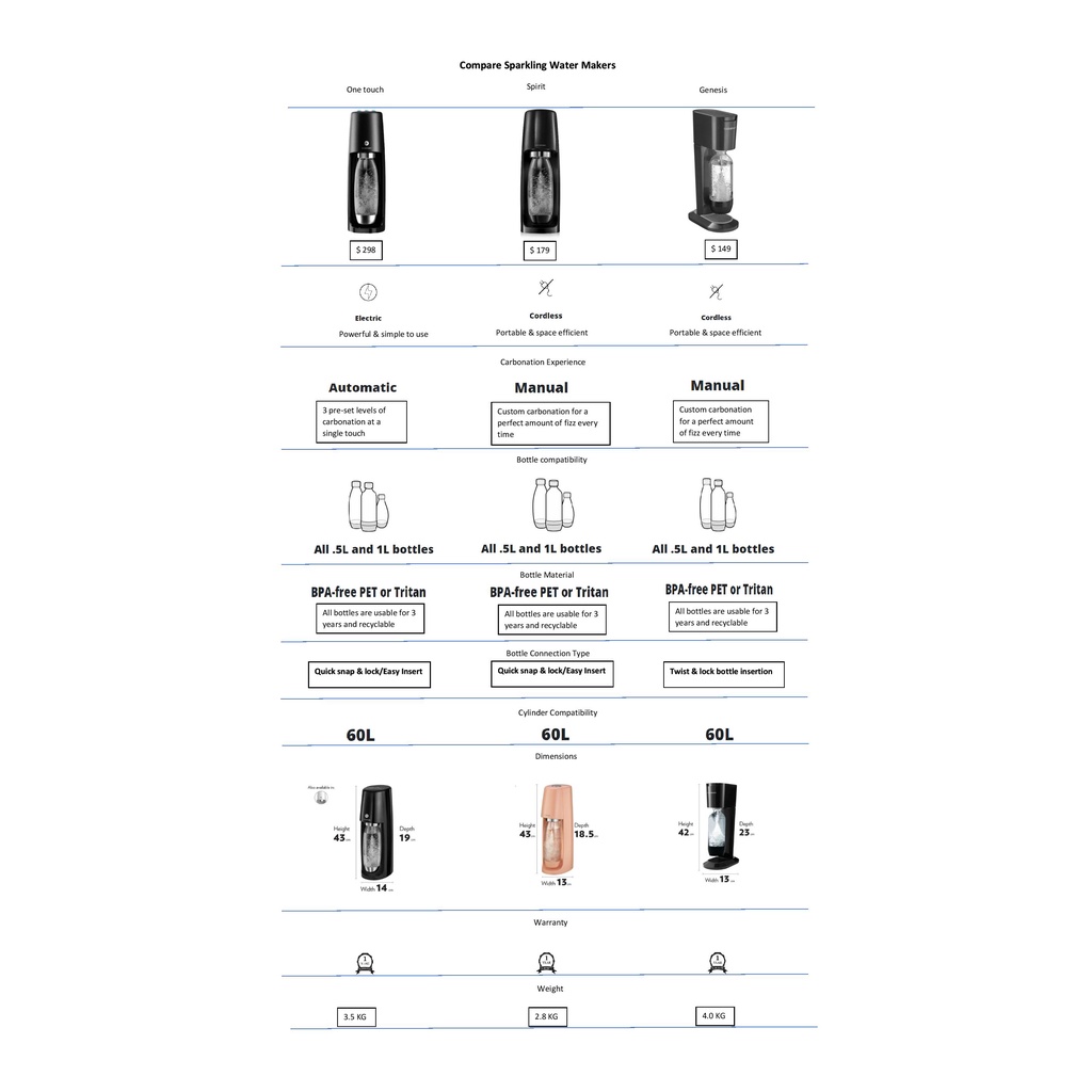 Carbonating Bottle Compatibility: 1L,1L Source™,0.5L Source™