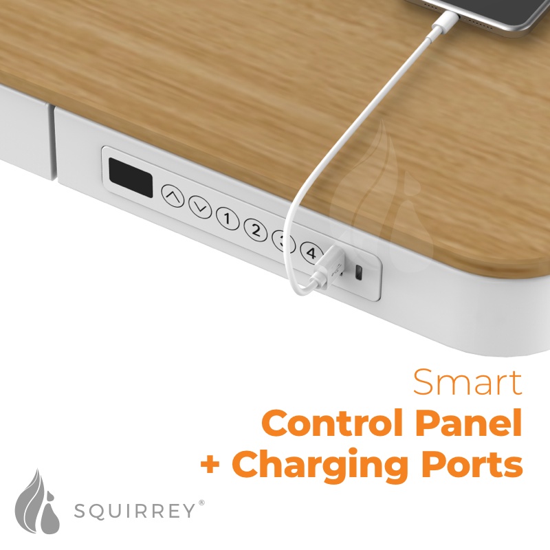 Squirrey Electric Height Adjustable Desk - Executive | Premium [120x60cm Tabletop, USB Port, Control Panel, Furniture]