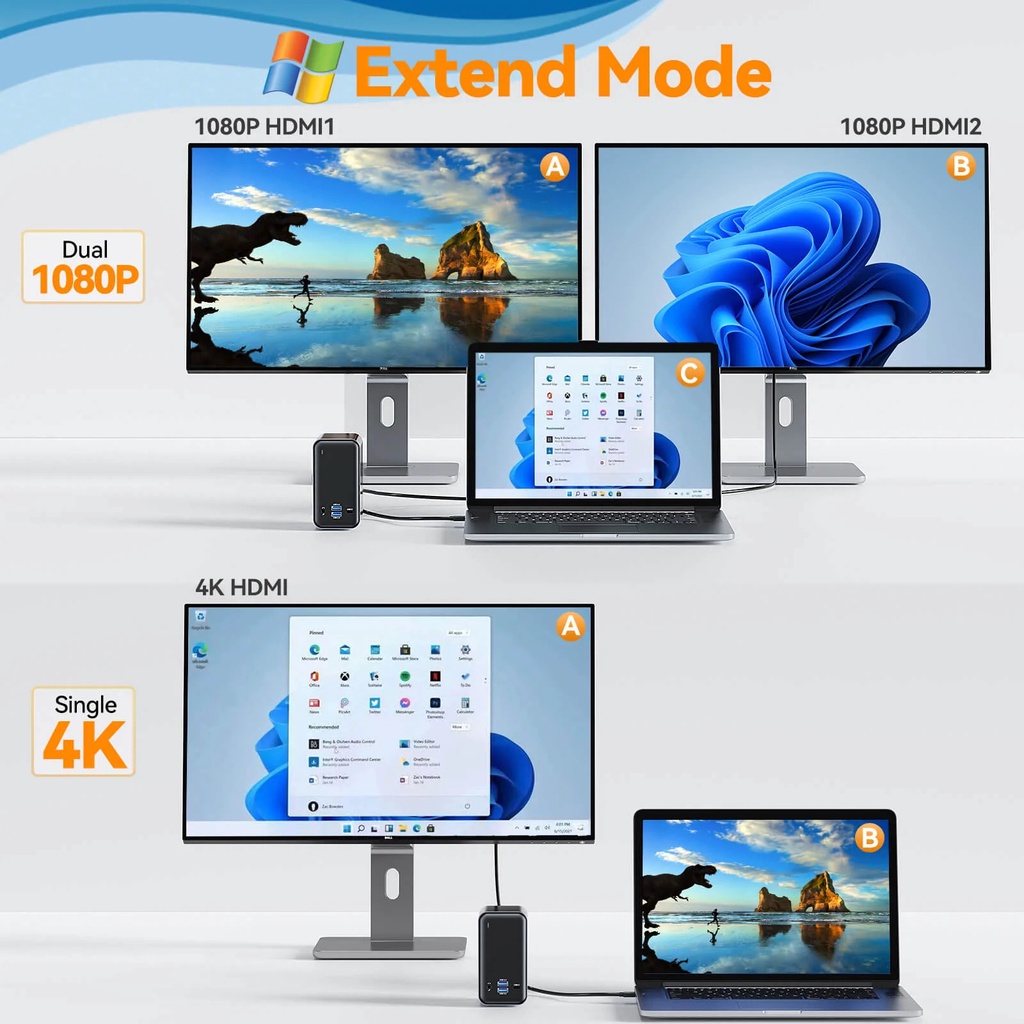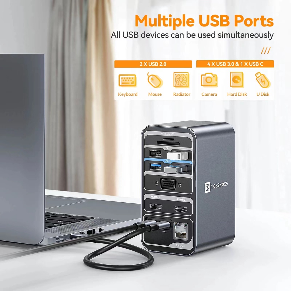 EXTEND DUAL MONITOR on USB C windows laptop: Tobenone USB C dual monitor docking station can access dual HD external monitors via HDMI ports VGA port or you can get one 4K monitor, which is perfect for those who need to deal with Ultra HD image and video output tasks.