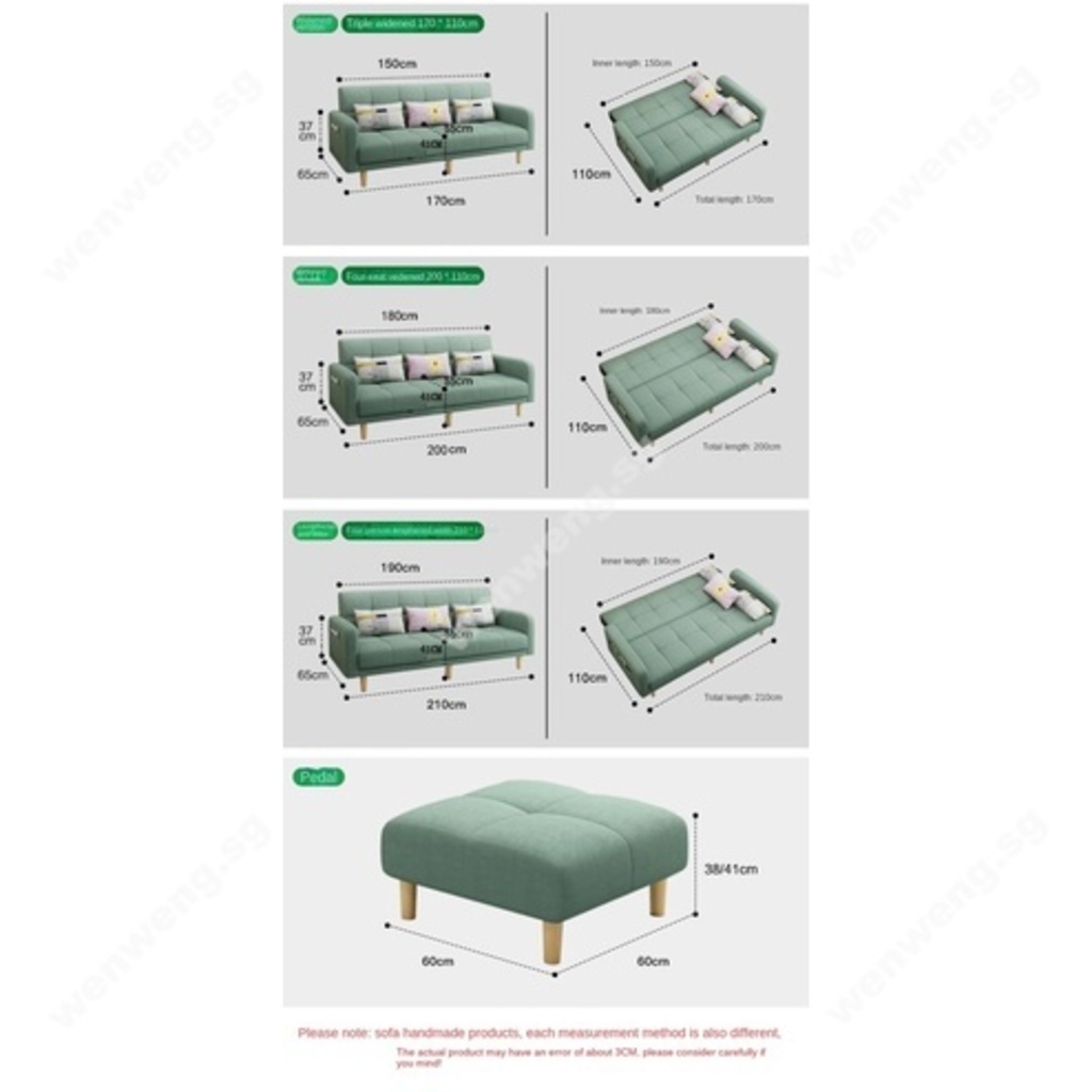 Wenweng Modern Simple Folding Dual-use Disposable Technology Fabric Sofa Double Small Family Living Room Rental Room Sofa Bed 9SH6