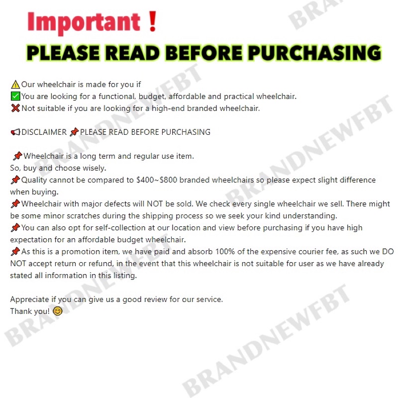 ? As this is a promotion item, we have paid and absorbed 100% of the expensive courier fees which you only paid $0, as such we ❌DO NOT accept return or refund, in the event that this item is not suitable for user as we have stated all information in this listing. PM us if u not sure.