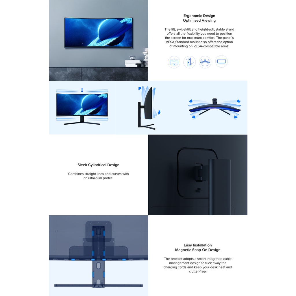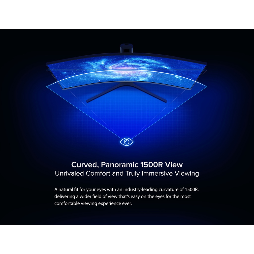-1500R large curvature surrounded visual field, gives you an immersive experience. The 1500R's extremely large curvature design, the line of sight is surrounded by the screen, showing a panoramic view of the overall immersion; the curved screen has a smaller visual tilt angle, and the eyes are almost equidistant, reducing visual distortion, fully restore the true Horizons of each corner.