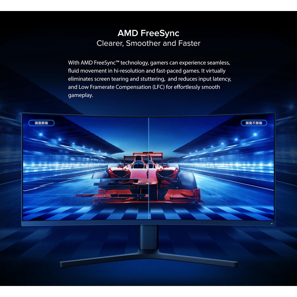 -AMD Free-Sync, the picture is smooth, not stuck, not tearing. AMD Free-Sync technology can consistently match the screen display at high frame rate input, reducing problems such as stucking or tearing during game play, improving visual fluency and greatly enhancing player competitiveness.