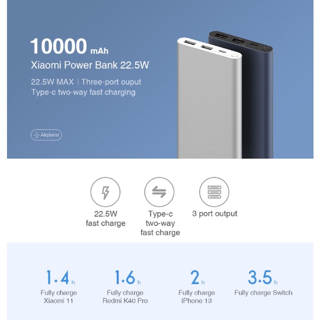 Xiaomi Power Bank 3 10000mAh 22.5W PB100DZM Type C QC3.0 PD Two way Fast Charging
