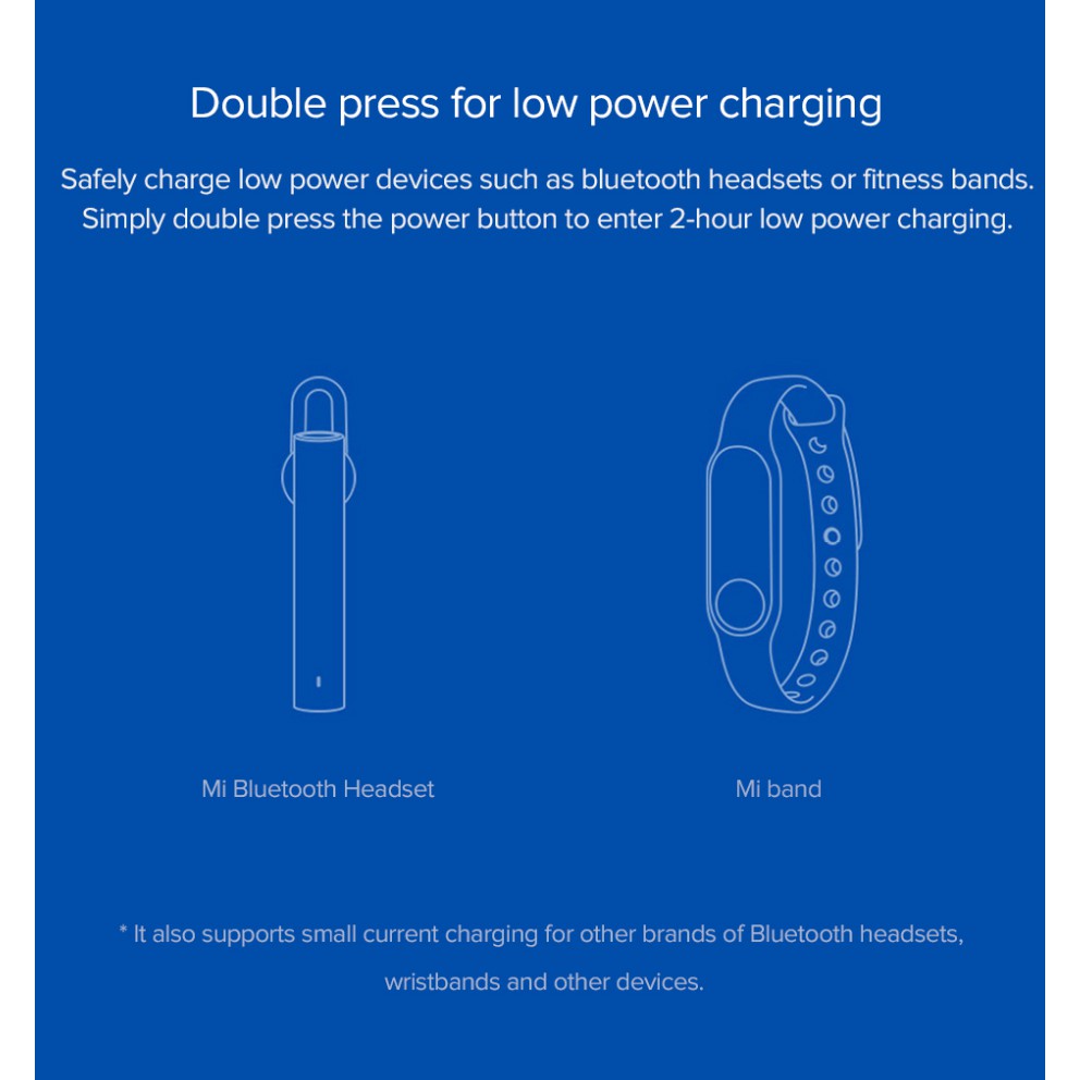 Double-click the battery check button to switch to the small-current output mode, which can easily supply power to devices such as bracelets. Small current will not hurt the device